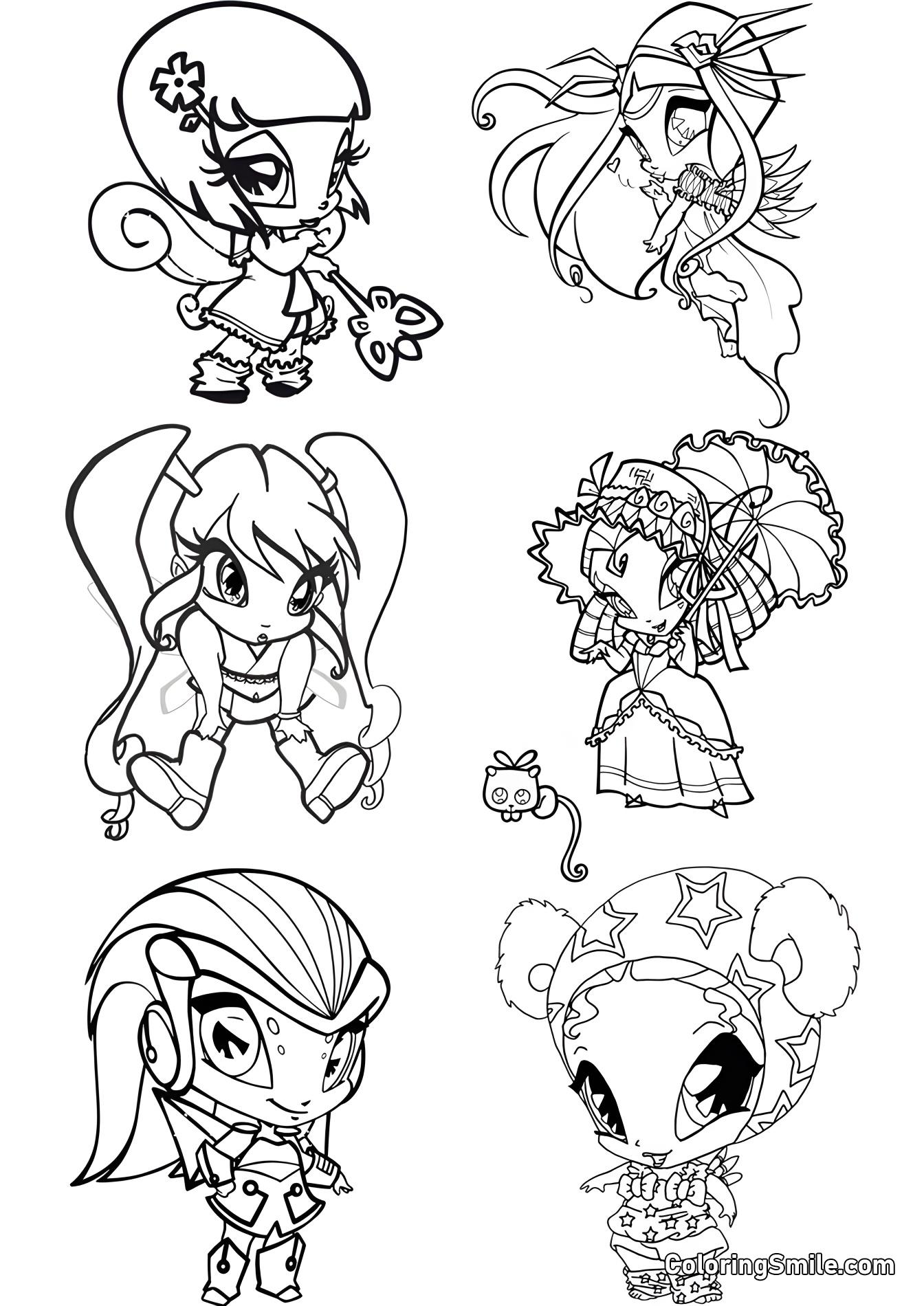 ¡Dale vida a la magia de Winx Club con estos divertidos y creativos dibujos para colorear! Con todos tus personajes favoritos: Bloom, Flora, Stella, Roxy, Musa, Aisha (Layla), Tecna, las Pixies, las brujas Trix y los Especialistas, esta colección es perfecta para los fanáticos de la querida serie animada.